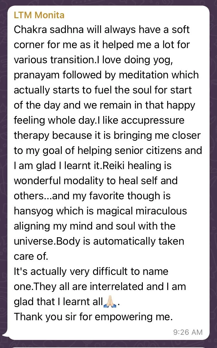 We're not here to claim any Results, But many Participants who practice regularly have experience of get rid of Stress, Anxiety, Tension, Pain, Depression, Diseases...